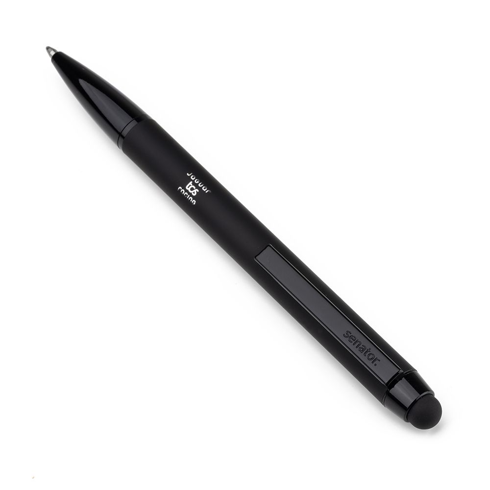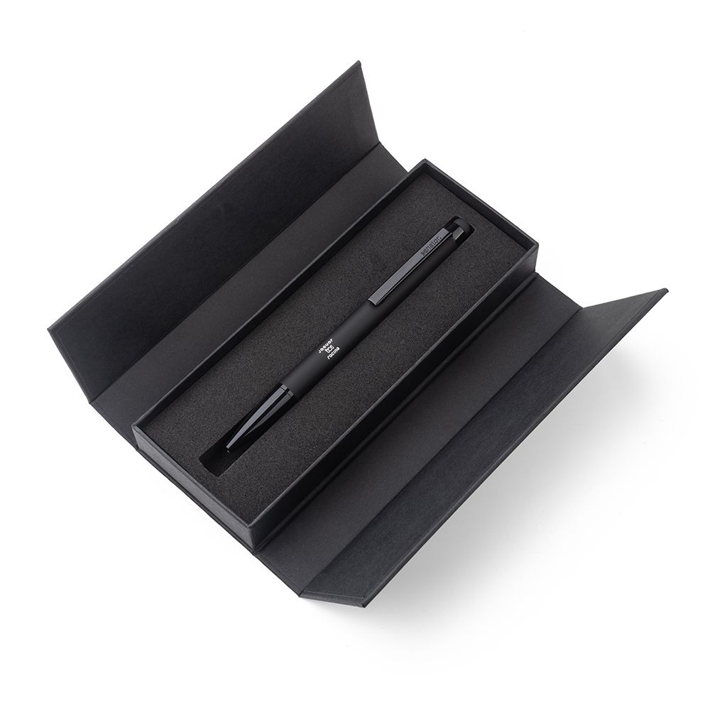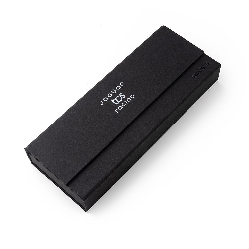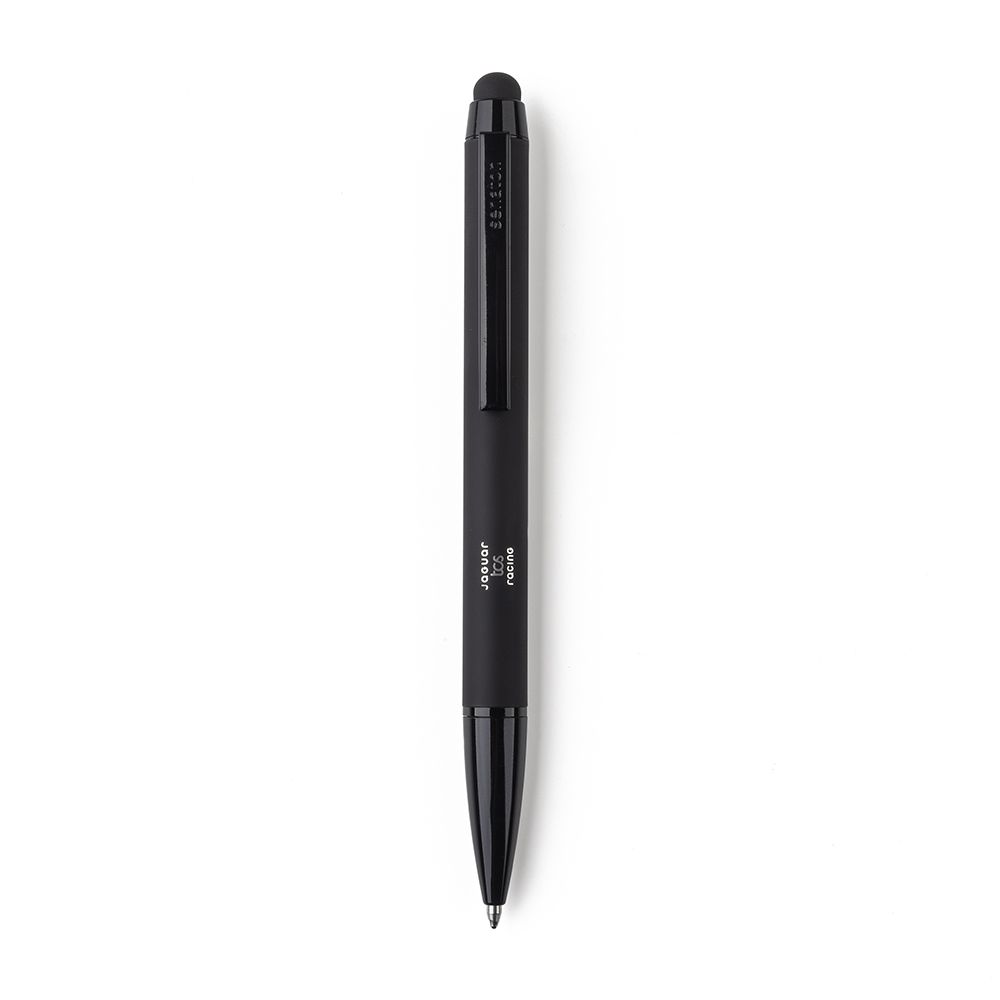 Black ballpoint pen with Jaguar TCS Racing logo. Soft-touch ballpoint finished in matte and gloss black. Includes a presentation case.